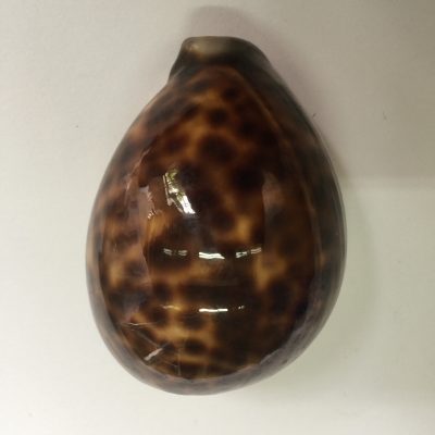 The Tiger Cowrie is a familiar shell to many people.This is very common Indo-Pacific reef species is exported by the ton to USA and Europe for the tourist trade.In early 1900s,specimens with the Lord ‘s Prayer etched by acid on the top surface were popular.The attractive brown mottling can be quite variable and occasionally solid black shells turn up.Tiger Cowrie from Hawaii are not common and these often extra -large specimens command high prices.Pure white albino shells are extremely rare and are the most difficult variation to obtain.